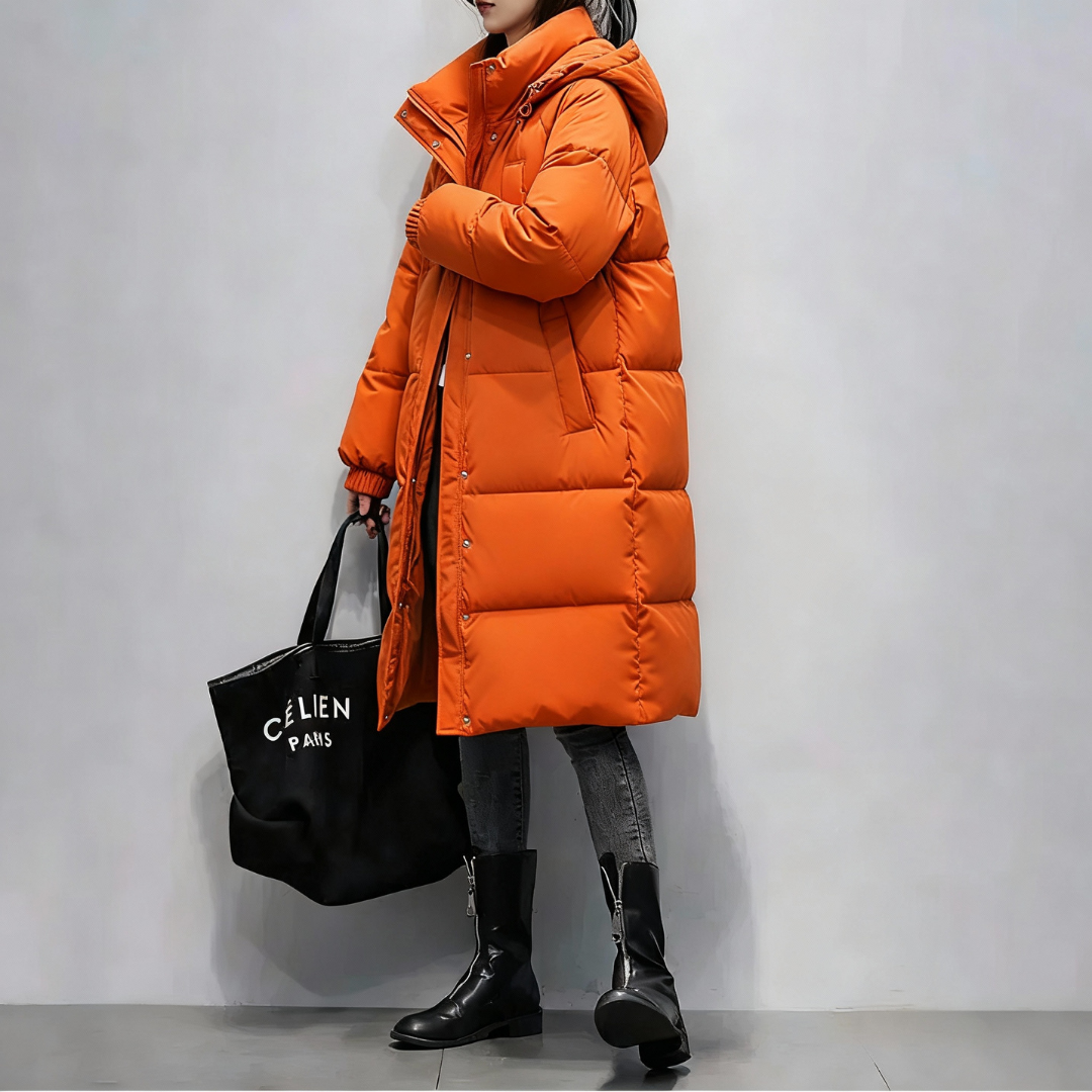Hooded Long Puffer Orange Coat