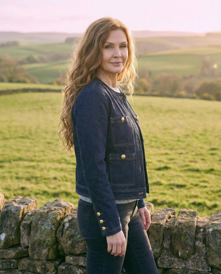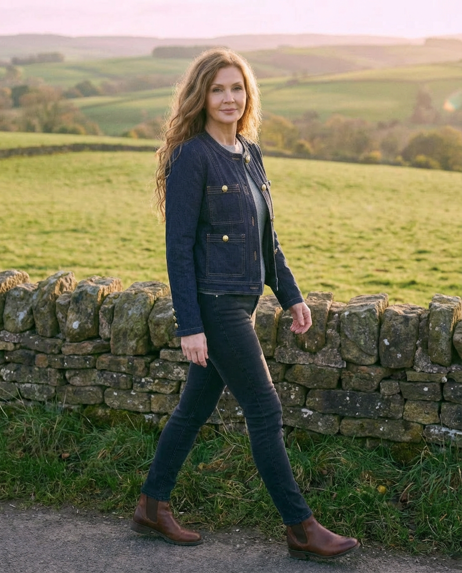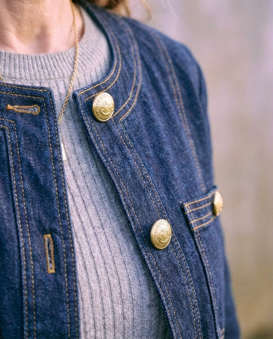 Aria is a versatile denim layer that blends vintage character with contemporary styling, making it a reliable choice for casual spring wardrobes.