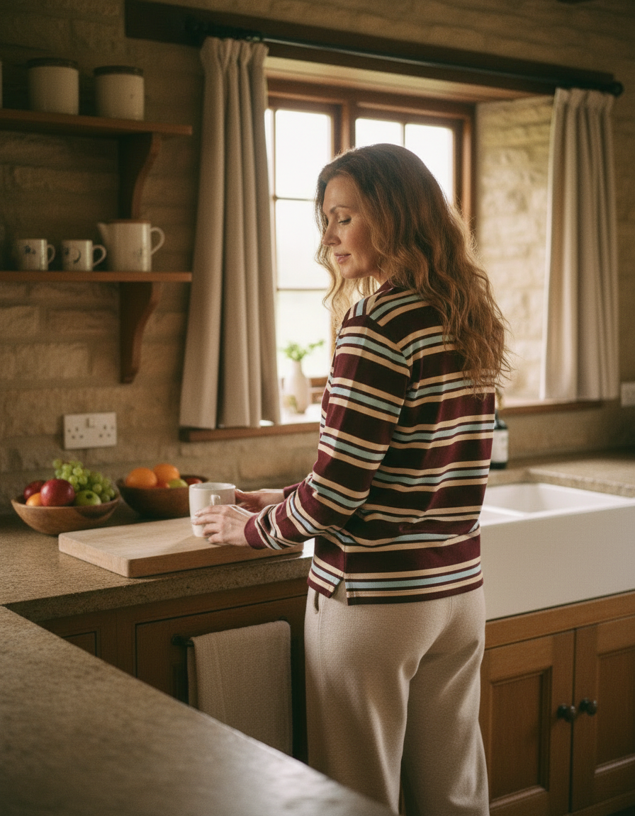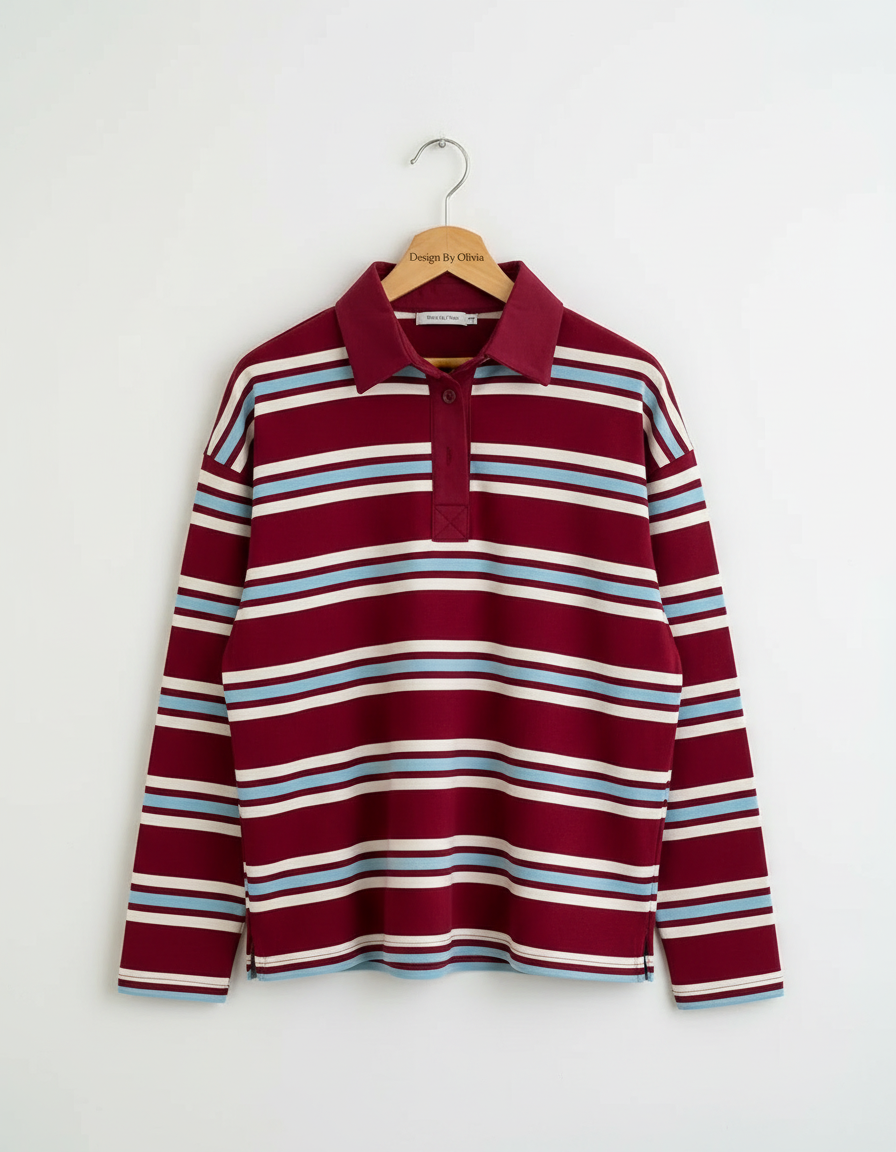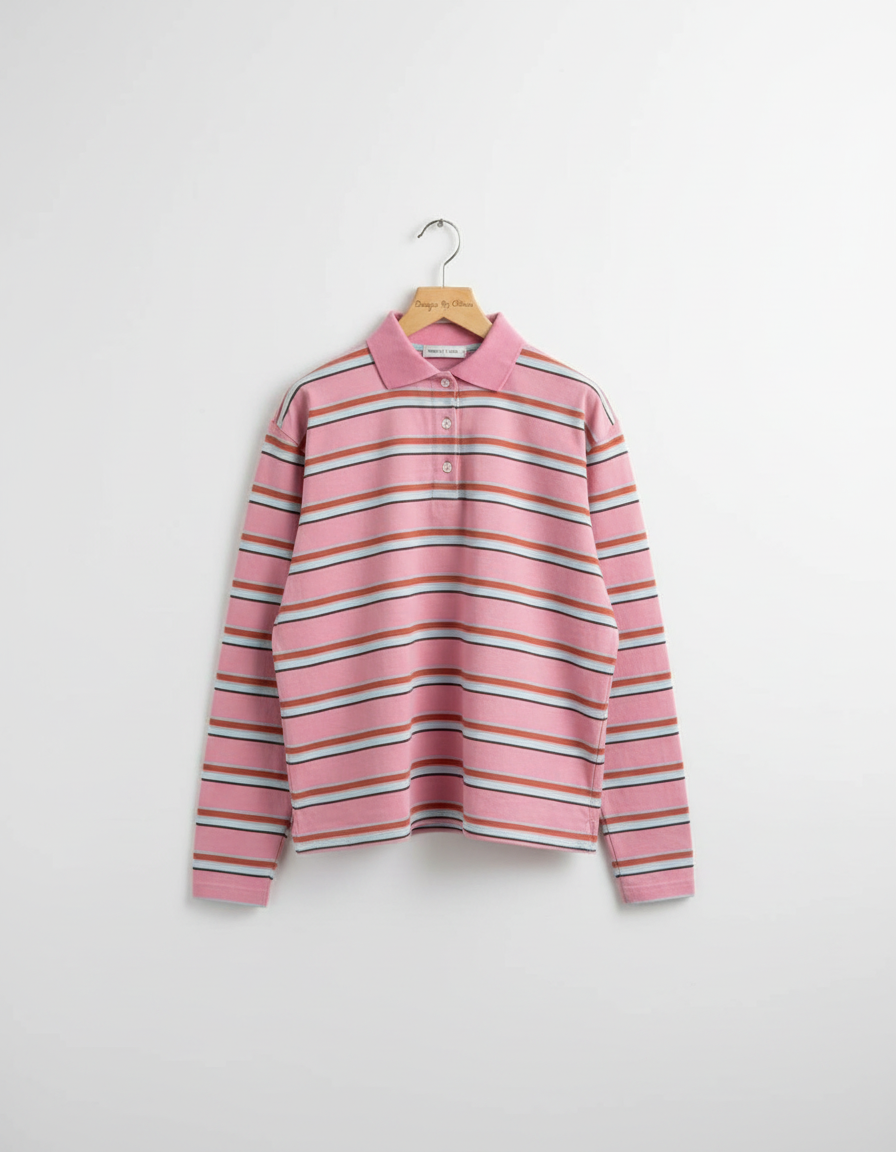 Designed to bring a vintage-inspired, relaxed feel to autumn and winter dressing, this women’s striped polo long-sleeve T-shirt offers an easy balance of comfort and office-ready style.