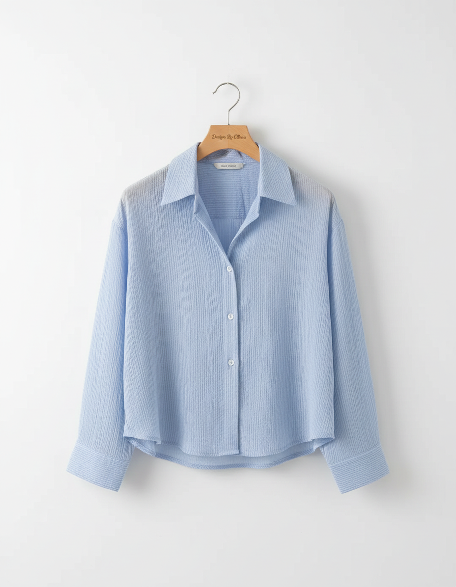 Designed to bring a chic, lightweight feel to spring and summer dressing, this women’s blue striped shirt offers a stylish balance of casual elegance and everyday practicality.